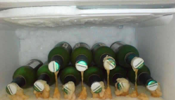 将罐装或者瓶装的液体,尤其是可乐等碳酸类液体存放在冷冻室内,瓶或罐会有爆炸危险。这是由于碳酸饮品溶有大量气体物质,气体物质的溶解度会随着温度的升高而降低。而装碳酸饮料和啤酒的易拉罐是密闭的,饮料结冰后体积膨胀,从急冻室取出碳酸饮品后,饮品内的气体物质会在短时间内大量析出,致使罐体内部压力变大,所以容易在开启瞬间爆炸。