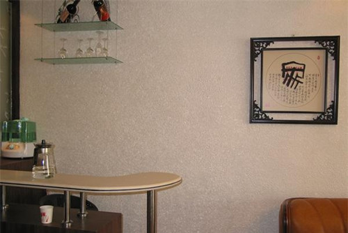 1、将混合物塑料抹刀粘到墙上,然后抹开,用专用辊刷辊匀(厚度一般为1-2毫米为宜)。等干后发现有不均匀或裸露的墙面,洒点温水,再补上混合好的产品,辊平即可。