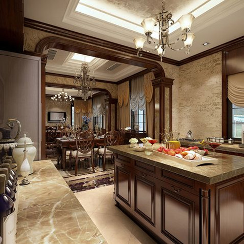 (2)厨房与餐厅的空间层次:考虑空间层次,避免餐厅显得单调。即开阔又要充实。