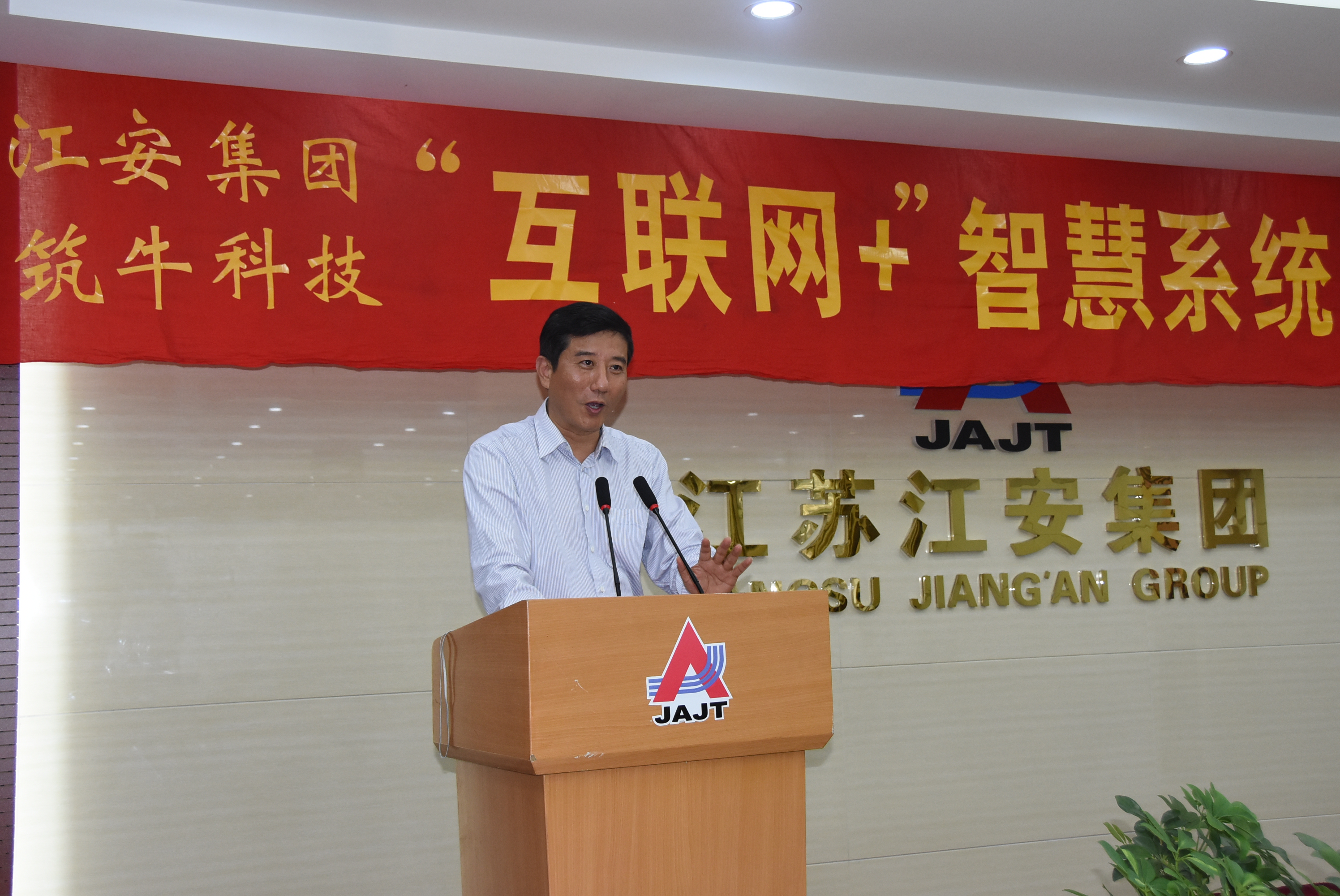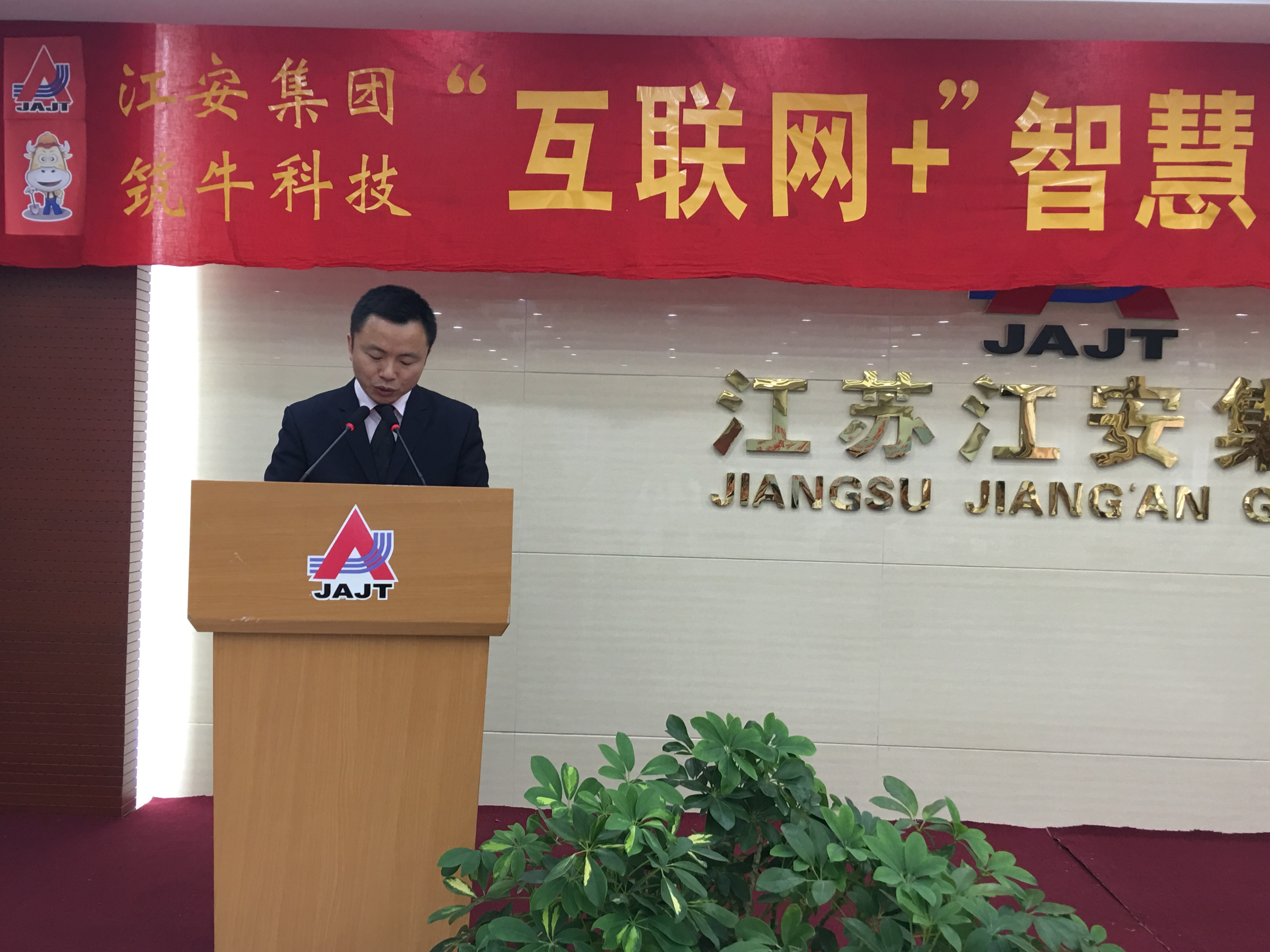 江都区建管局钱进局长也在百忙之中亲临仪式现场,压轴登场做重要讲话。他指出江都建筑业要瞄准建筑产业现代化来推进落实,只有以建筑产业信息化为目标,才能实现建筑业的转型升级和健康发展。他认为此次江安集团借助筑牛科技强大团队的力量的支撑,共同联合开发互联网+智慧系统,这必将是江都建筑业、安装业信息化建设的新的里程碑,一定能开发新的机遇。他坚信双方合作一定会取得圆满的成功,也借此机会祝愿筑牛科技尽快成为“建筑业的阿里巴巴”。