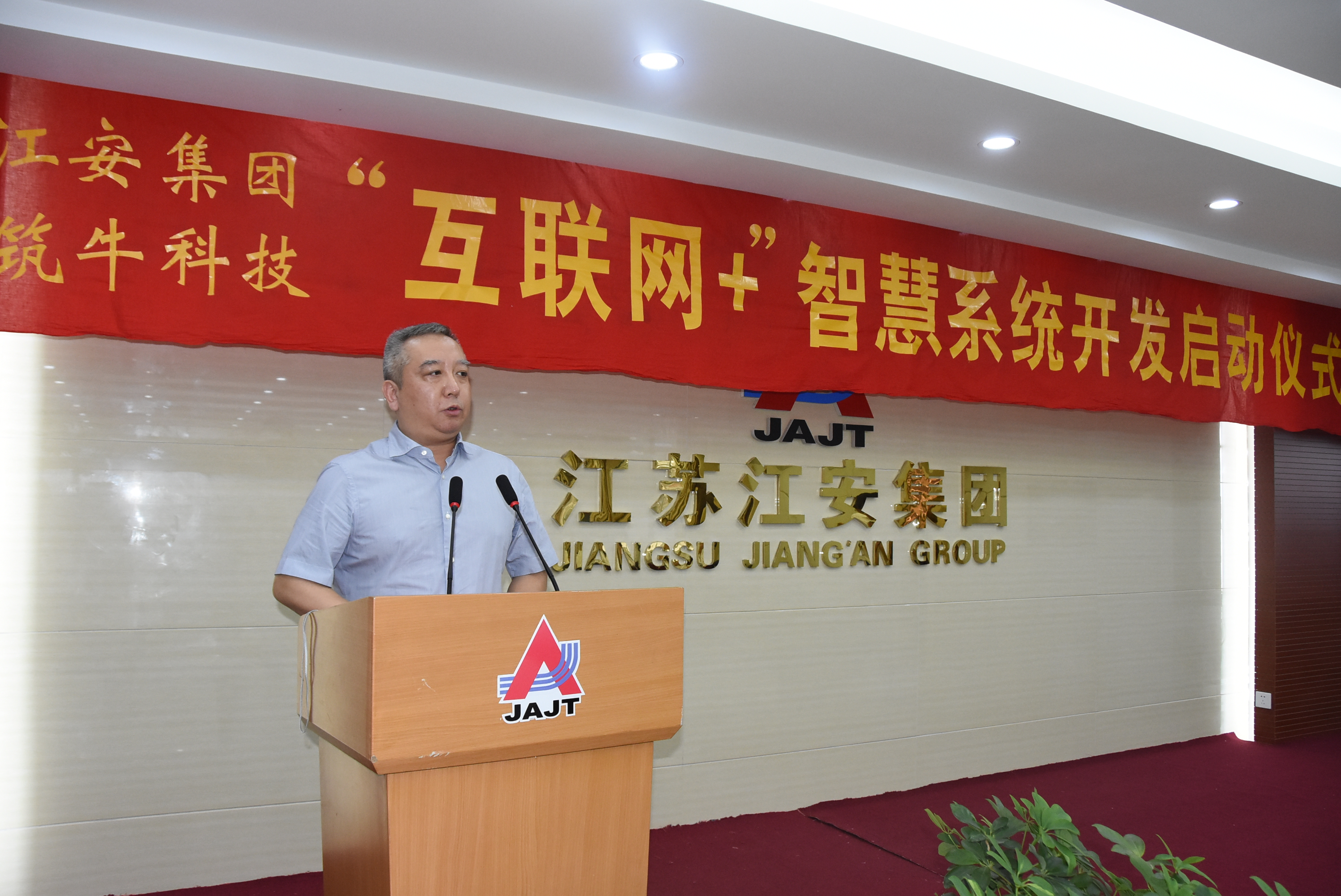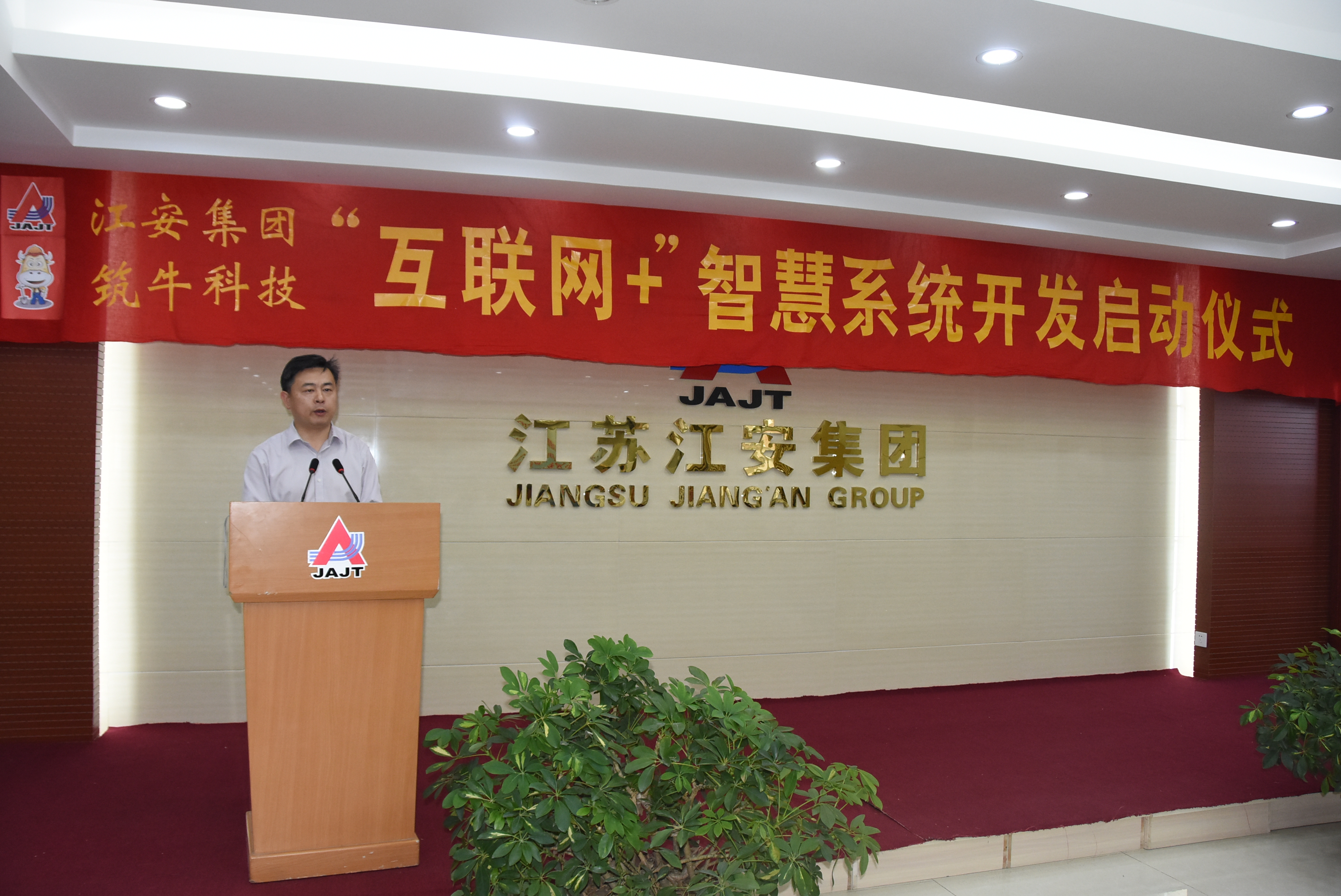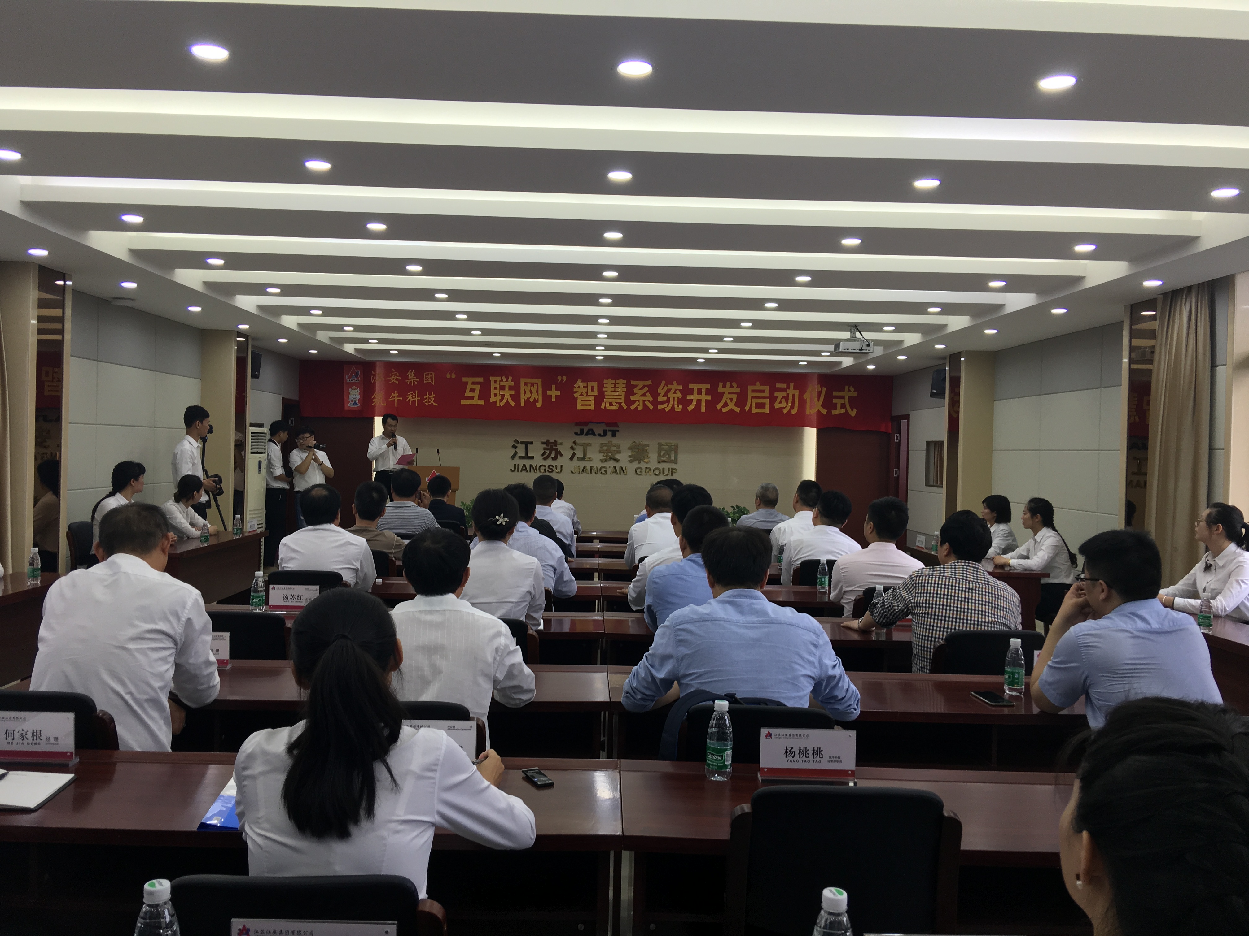 2016年5月27日,江安集团联合筑牛科技“互联网+”智慧系统启动仪式于江安集团总部五楼会议室隆重举行。江都建管局钱进局长、筑牛科技董事长王继洲博士和以江建集团董事长王成明先生为首的江建公司高层团队、江安集团董事长刘忠鸣先生及公司员工等五十余人参加了此次启动仪式,共同见证筑牛科技协助江安集团打造的“互联网+”智慧系统正式启动开发这个普通又特别的时刻。