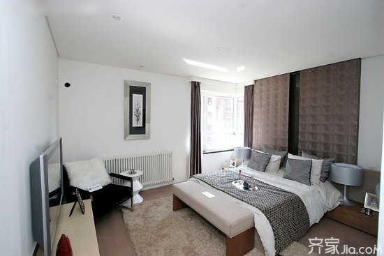 卧室的功能主要是睡眠休息,属私人空间,不向客人开放,所以卧室装修不必有过多的造型,通常也不需吊顶,墙壁的处理越简洁越好, 通常刷乳胶漆即可,床头上的墙壁可适当做点造型和点缀。卧室的壁饰不宜过多,还应与墙壁材料和家具搭配得当。卧室的风格与情调主要不是由墙、地、顶等硬装 修来决定的,而是由窗帘、床罩、衣橱等软装饰决定的,它们面积很大,它们的图案、色彩往往主宰了卧室的格调,成为卧室的主旋律。