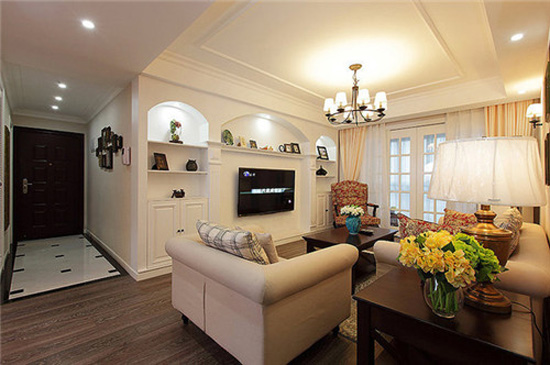 因为风格相对简洁,细节处理便显得尤为重要。简单的石膏线给吊顶做出层次,并不复杂,简单明了地表现出美式风格的特点。配上白色或米白色的涂料,突出了石膏线的细节。