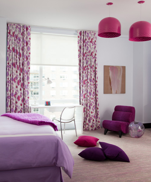 紫色单品点缀其间。大面积的紫色墙面,淡紫色的沙发和床品,成熟味满满。不同深浅的紫色,搭出的房间的层次感。不过要切记,光线不足的房间最好不要尝试紫色,昏暗空间里的紫色,你可以试着想想盘丝洞。
