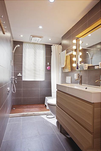 在同一个卫生间内,普通家庭所要实现的功能通常包括方便、洗漱、淋浴、浣洗拖把,甚至洗衣服等。除“方便”外,其他活动几乎都可能使水花四溅,而洗浴完毕后,更会在卫生间墙上、地下留下水渍以及浓浓的一层水气。如此一来,不仅容易让人滑倒,而且还需经常打扫,避免因潮湿而滋生细菌,影响家人健康。而干湿分区的作用正在于此,合理地把“方便”和“清洗”分成两块分隔出来,使其互不干扰。