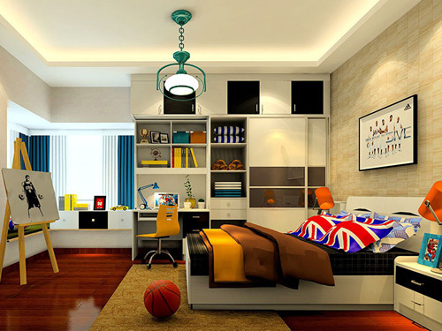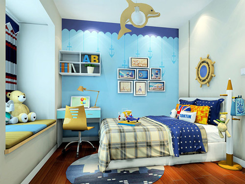 在装饰美式儿童房的时候,对于局部装饰要认真设计,比例墙上挂钟表来作为装饰,这样的目的不仅起到装饰的效果,还可以来告诫孩子,时间不等人,要懂得珍惜时间。在书柜上面放一个小的装饰物,例如一些著名的建筑模型,这样的模型能补缺柜子上方的空白装饰,还能潜移默化的指引孩子学习相关知识。