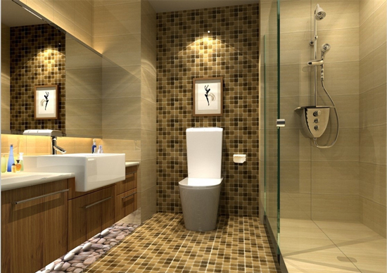 铺地砖前做至少24小时的闭水实验,到楼下看看有无漏水痕迹;地砖与墙砖通缝对齐,铺地砖的时候要保证砖面有一个1°左右的泄水坡度,坡度要朝向地漏。