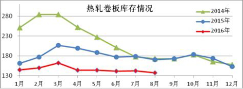 本月热轧卷板库存增加的地区有10个,其中增加较多的地区有天津,库存增加3.5万吨,其中钢材市场增加1.5万吨,港口增加2.0万吨;北京库存增加0.3万吨,沈阳0.1万吨,济南0.12万吨,郑州0.1万吨,武汉1.2万吨,长沙0.2万吨,西安0.7万吨;库存减少的地区有6个,其中减少较多的地区有上海,库存减少2.1万吨,其中钢材市场减少2.0万吨,港口减少0.1万吨;广州库存减少8.5万吨,其中钢材市场库存减少5.7万吨,港口减少2.8万吨;南昌库存减少0.4万吨,成都0.5万吨,重庆0.2万吨。