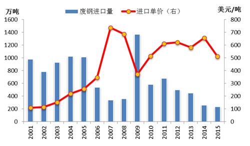 图表5近年来中国废钢进口量及进口价格变化情况