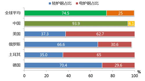 图表42015年全球及主要国家电炉钢占比情况
