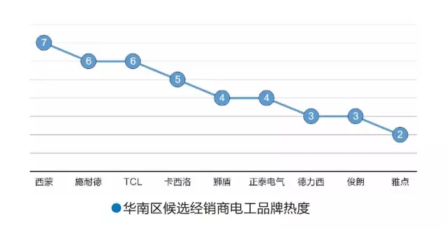 华北区市场品牌以欧普照明、雷士照明、三雄·极光、飞利浦、木林森等为主,灯饰品牌以华艺与琪朗、钜豪占比大,电工品牌以TCL、鸿雁、飞雕居多。值得一提的是,在北京,大品牌价格略高,小品牌趁机刮分市场现象并不罕见。