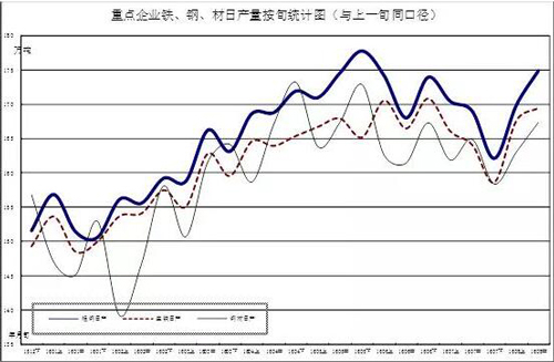 本旬生铁产量比上一旬日均增量前三家企业是:山钢集团增产0.47万吨、鞍钢集团增产0.29万吨、国义特钢增产0.26万吨;比上一旬日均减量前三家企业是:武钢集团减产0.45万吨、陕钢集团减产0.35万吨、沙钢集团减产0.32万吨。