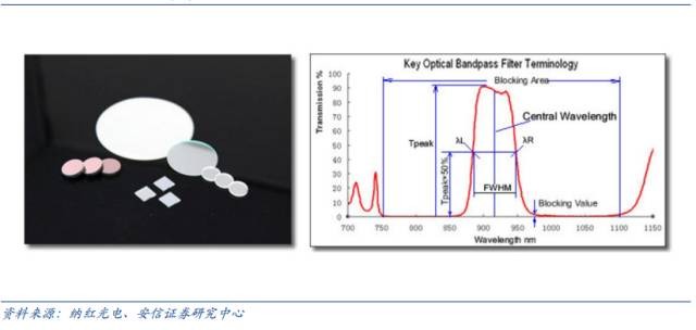 技术上红外 LED 窄带滤光片有望成为核心因素。目前有些方案采用隔离可见光透过红外光的红外玻璃作为滤光片,然而普通的红外玻璃只是隔离了可见光和紫外光,并没有隔离干扰光中处于红外波段的部分。因此想得到良好的抗干扰效果,必须采用窄带滤光片。