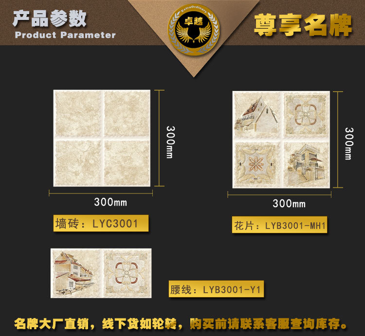 卓越勋章是属于中国十大名牌瓷砖集团企业大型集团工厂旗下的新品牌,工厂原厂原坯原包装品牌,属于真正的瓷砖行业名牌产品,质量领先于目前绝大部分网商贴牌产品。工厂专业生产抛光砖,全抛釉,微晶石,厨卫瓷片,几大类瓷砖建材产品。产品品质符合国家名牌瓷砖产品指标,多个中国十大名牌产品均在本厂贴牌生产,工厂企业生产实力强大,在行内知名度口碑都极好,产品品质亦深得消费者信赖欢迎。欢迎各界广大客户到佛山工厂展厅参观!